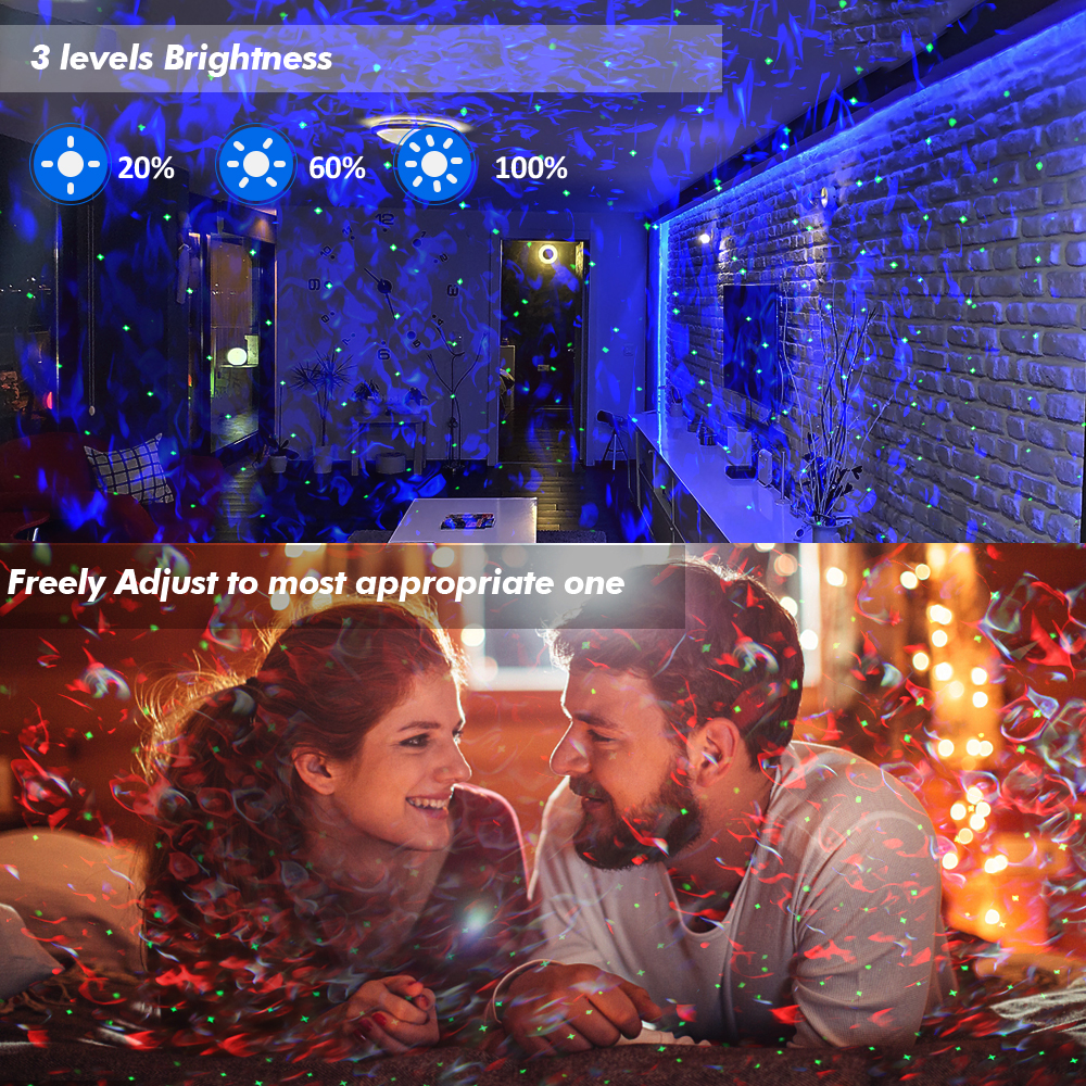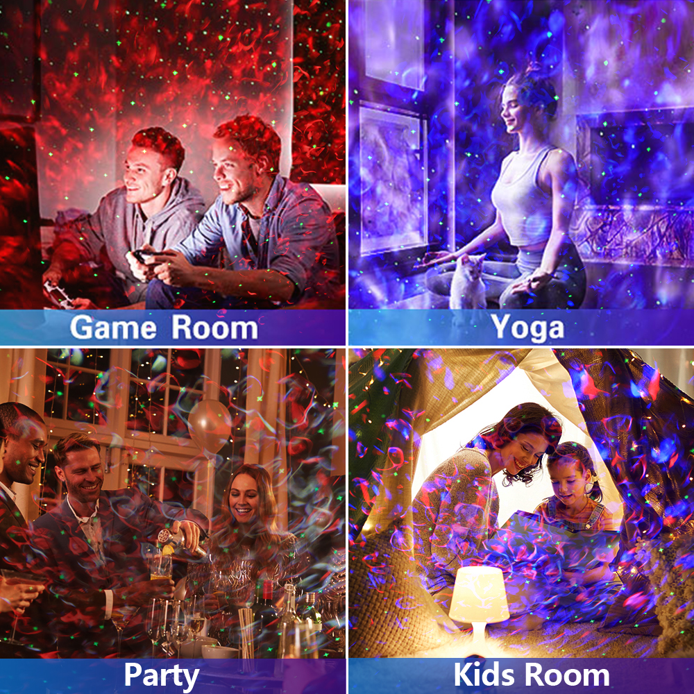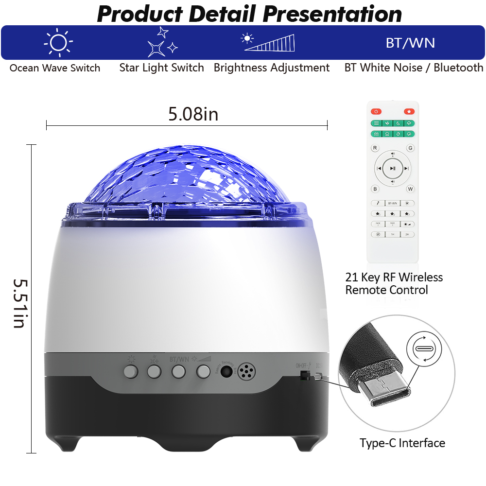 Star Night Light features with 10 Multicolored light effects, single color or mixed color ocean wave with LED stars patterns.